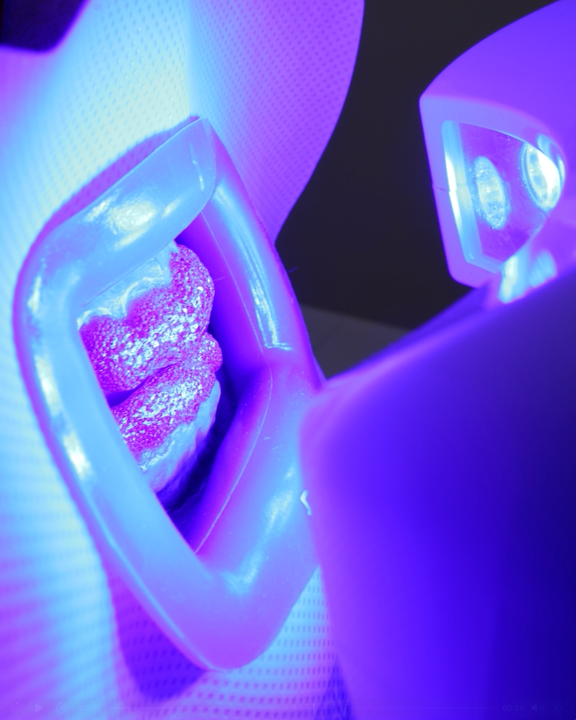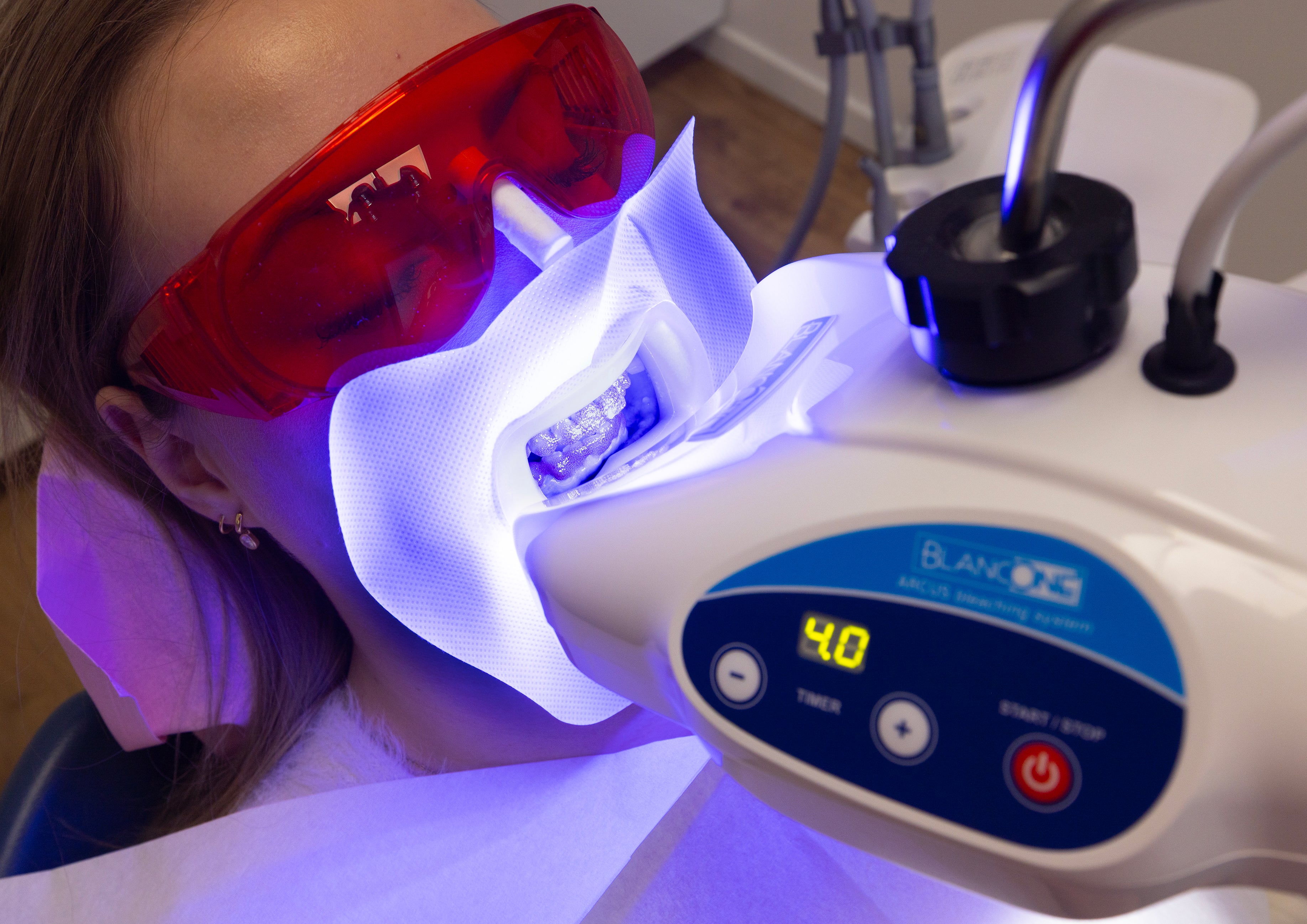 BlancOne®-blegegelen indeholder særlige fotosensibilisatorer, som absorberer energi fra fotoner, der udsendes af BlancOne® Arcus+ LED-aktiveringslampen ved en bestemt bølgelængde. Som følge heraf stiger tændernes temperatur ikke. I stedet sætter lysaktiveringen gang i en kædereaktion, der producerer store mængder af singlet oxygen-molekyler, ud over de frie oxygen-radikaler.
